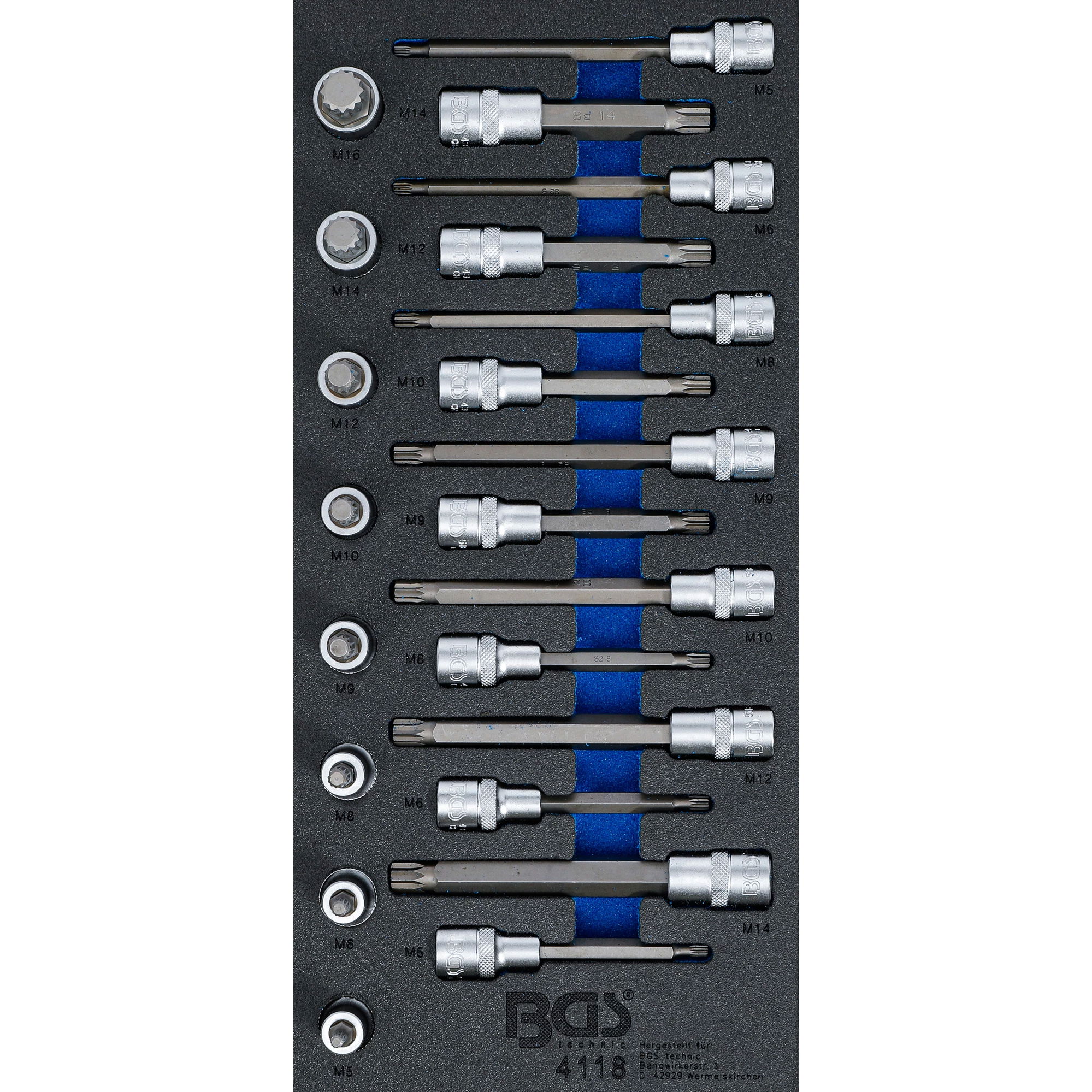 BGS Technic 9-4118 1/2"-os rátűzőkulcs készlet, XZN, M5-M16, EVA tálcás, 22 részes